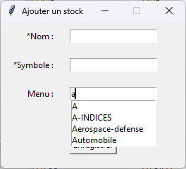 Pour ajouter une action, vous devez vous enquérir du Nom et du Symbole de l'action que vous souhaitez analyser.