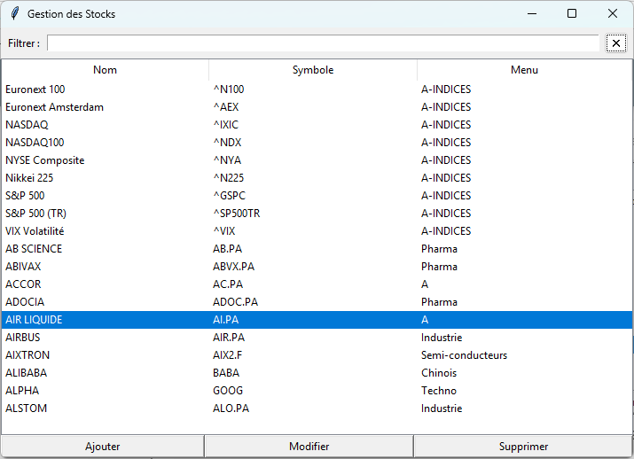 Vous souhaitez par exemple modifier l'action AIR LIQUIDE cliquez sur Modifier :