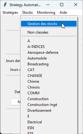Sélectionnez une Actions, choisissez une Stratégie, cliquez sur "Graphique" le graphique de l'action s'affiche.