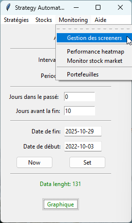 En cliquant sur le Menu "Monitoring" -> "Gestion des scrreners" vous ouvrez la fenêtre suivante :