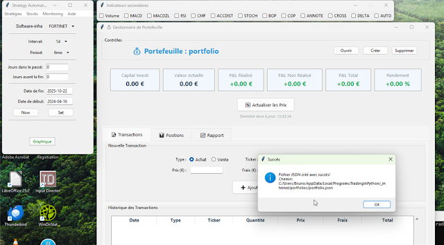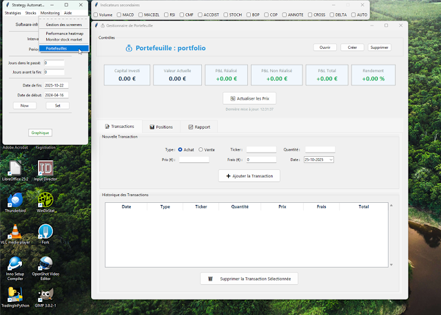 Le Gestionnaire de Portefeuilles, vous permet de consolider votre trading par la gestion rigoureuse de tous vos actes d'achats/ventes dans un Portefeuille qui centralise tous vos achats, vos ventes et calcule l'efficacité de vos trades.