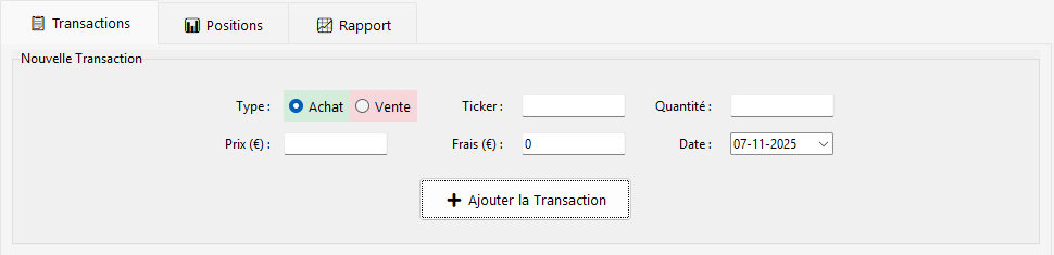 Je consolide tous mes achats/ventes dans le Volet Transactions :
