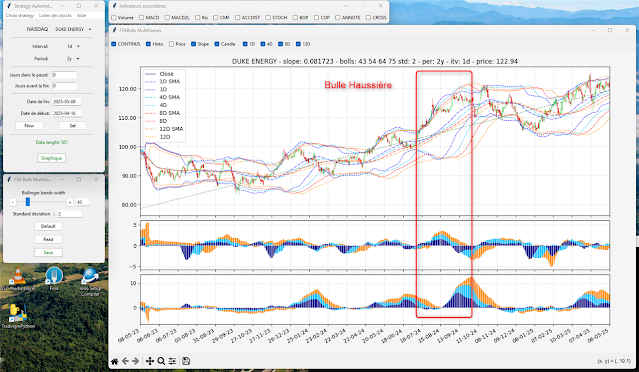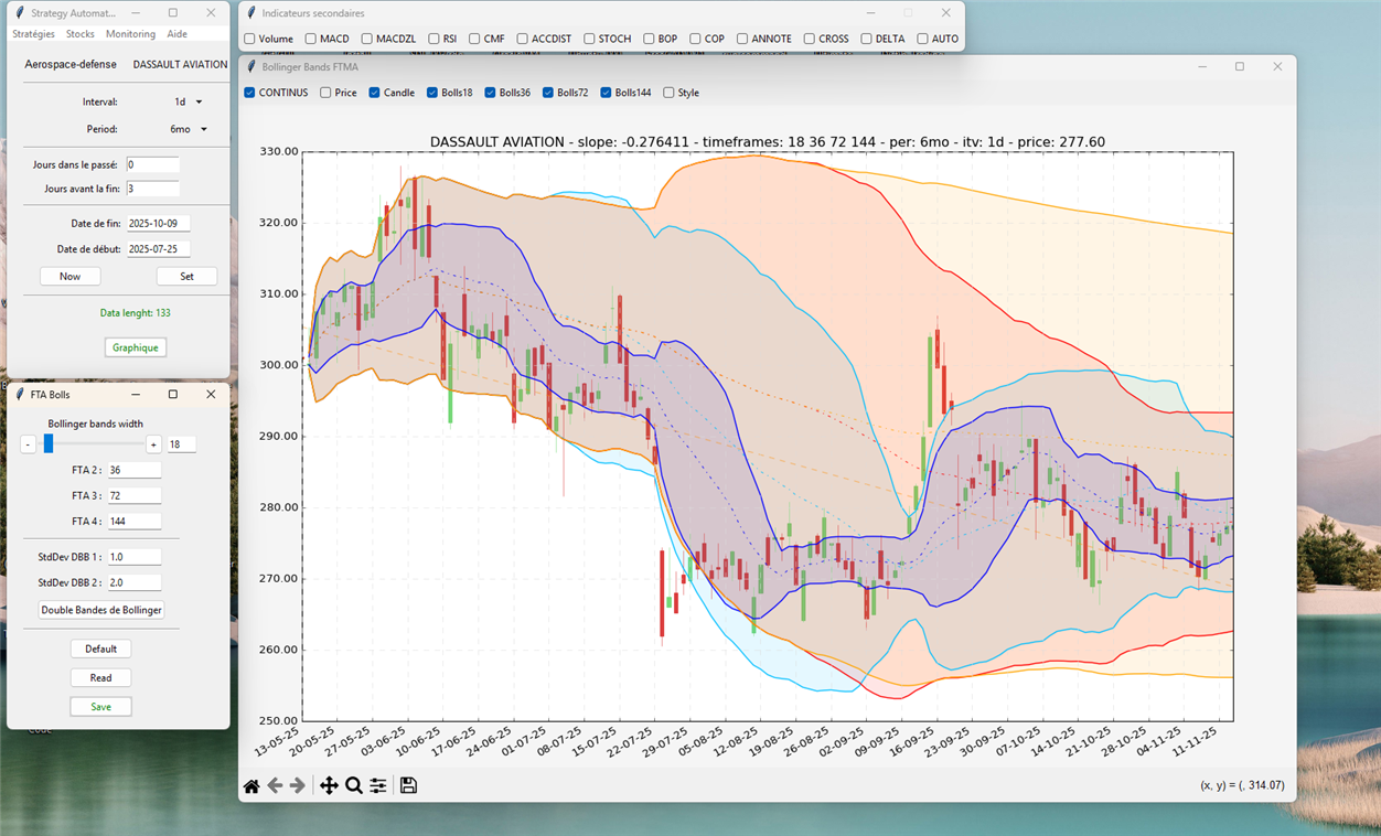 Sur le Net, la documentation sur les Bandes de Bollinger est plétorique, voici la mise en oeuvre des Bolls not in glossary! dans la plateforme.